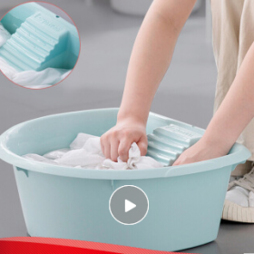 茶花/CHAHUA 73875 塑料制品洗脸盆 塑料盆子搓衣板洗衣盆 浴盆大水盆 浅米色 1只装