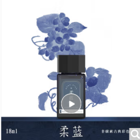 蓝天 M18 墨水/补充液/墨囊 弘典墨水钢笔用彩色非碳素黑色蓝黑水性颜料不堵笔毛笔书法16色18毫升多色彩可调色蘸水古典国风系列染料 柔蓝