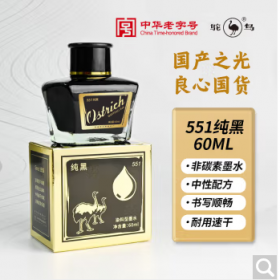 鸵鸟 551 墨水/补充液/墨囊 墨水5系蓝黑色高端染料型墨囊速干不堵笔成人钢笔学生笔蘸水笔办公档案用派克百乐英雄通用 60ml 551黑色非碳素 字迹饱满