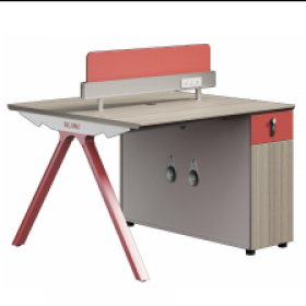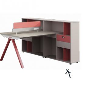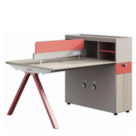 安格佳 KJSQ-KBZY15-A 办公桌 二人工位 2人位 职员桌 现代简约 胶板大班台 胶板主管桌 2人办公桌 工作桌 尺寸 1560W*1200D*1075H 北美白橡+奶油白+暗砖红
