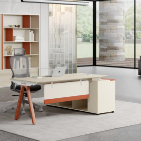 安格佳 KJSQ-KBBT16 办公桌 老板桌 大班台 板油大班台 板油主管桌 经理桌 总裁桌 单人办公桌 工作桌 左右互换 尺寸1600W*1400D*750H 北美白橡+奶油白+暗砖红