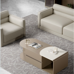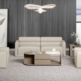 安格佳 KJT925-KRSF33 三人沙发 尺寸 2200*840*810 米色牛皮/西皮 黑色金属沙发脚 办公室沙发 接待沙发 三人位牛皮
