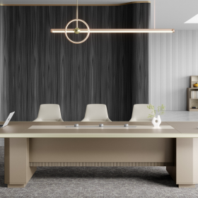 安格佳 KJNS-KBHT36 会议桌 尺寸 3600W*1500D*760H 大型会议桌 板油会议桌 会议台 板油长条桌 闪银浅咖+奶油白