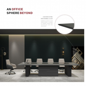 • 安格佳 KJFC-LH0736 会议桌 尺寸 3600W*1500D*760H 大型会议桌 会议桌 会议台 长条桌 马里深橡+铁灰+闪银国际灰