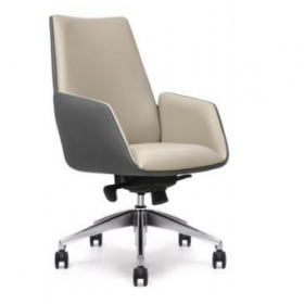• 国景 KJS613-KRPY1B 办公椅 办公椅子 尺寸 690*700*960 会议椅 实木扶手 铝合金抛光脚 米色牛皮/西皮 金属电镀脚 T2*φ32mm钢管电镀 转椅 学习椅 中背西皮 主管椅