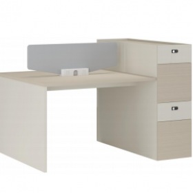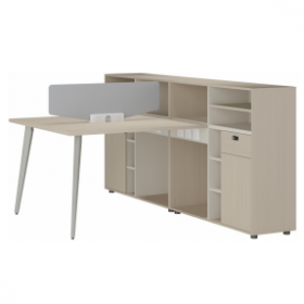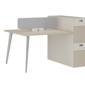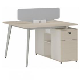 安格佳 KJCJ-KBZY16-E 办公桌 两人位 职员桌 屏风 职员桌 现代简约 胶板大班台 胶板主管桌 2人办公桌 工作桌 尺寸 1600W*1200D*1045H 光年科技木+奶油白+黄麻粗布
