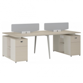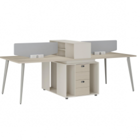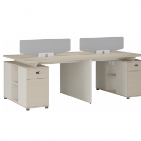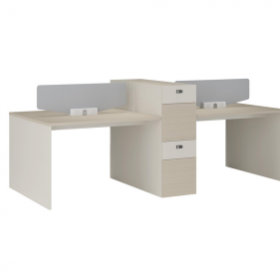 安格佳 KJCJ-KBZY28-B 办公桌 四人位职员桌 屏风 职员桌 现代简约 胶板大班台 胶板主管桌 4人办公桌 工作桌 尺寸 2800W*1200D*1050H 光年科技木+奶油白+黄麻粗布