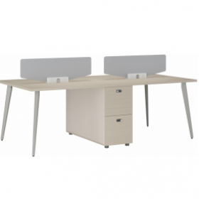 安格佳 KJCJ-KBZY16-C 办公桌 两人位 职员桌 屏风 职员桌 现代简约 胶板大班台 胶板主管桌 2人办公桌 工作桌 尺寸 1600W*2400D*1050H 光年科技木+奶油白+黄麻粗布