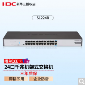 新华三/H3C S1224R 以太网交换机 24口千兆交换机机架式 S1224R 非网管即插即用企业级交换器 网络网线分流器