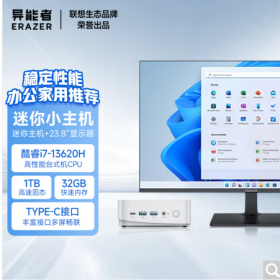 联想/LENOVO D80 台式计算机 生态品牌 异能者D80 mini口袋迷你主机台式机电脑(13代酷睿i7-13620H 32G 1T SSD) 23.8英寸套机