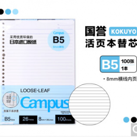 • 国誉/KOKUYO WCN-CLL1110 薄本册 B5活页纸Campus活页本替芯笔记本子活页纸内页 8mm横线26行 100张1本