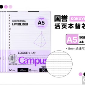 • 国誉/KOKUYO WCN-CLL3512 薄本册 A5活页纸Campus系列活页本替芯笔记本子活页纸内页 英语线11行 50张/本 4本