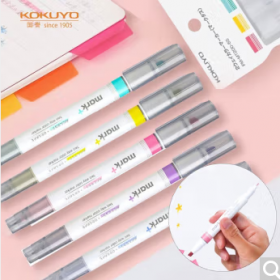 国誉/KOKUYO PM-MT200-5S 书写用笔类用具 进口mark+彩色荧光笔 学生用划重点记号笔 双头淡色系5色套装5支