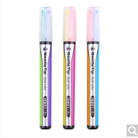 国誉/KOKUYO PM-L303-3S 书写用笔类用具 双色荧光笔Beetle Tip甲壳虫学生用考试复习重点标记笔 3支混装