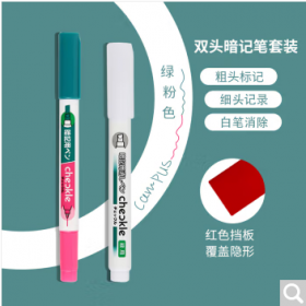 国誉/KOKUYO PM-M120P-S 书写用笔类用具 进口暗记笔套装双色荧光笔双头学生考试复习重点标记笔(绿/粉+遮板+消除笔)1套