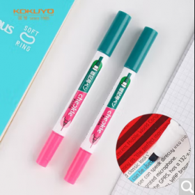 国誉/KOKUYO PM-M120P-1P 书写用笔类用具 进口暗记笔双色荧光记号笔双头学生考试复习重点标记笔 绿/粉2支
