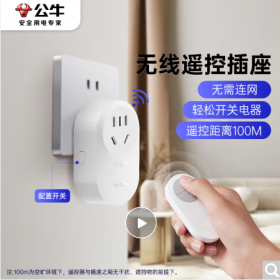 • 公牛/BULL GN-91011RF 插座 遥控智能插座 无线远距离远程控制开关插座 大棚/水泵/灯具适用 断电记忆 带遥控器