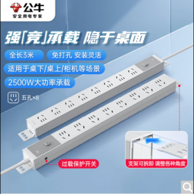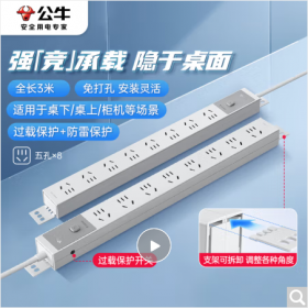 • 公牛/BULL GNE-P108E 插座 PDU桌面过载超功率保护桌下电竞机柜插座/插线板/插排/排插 8位总控开关全长3米 GNE-P108E 防过载