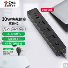 • 公牛/BULL GN-Z1031U30 插座 30W PD苹果快充插座/插线板/插排/接线板 Type-c+USB+3插孔 Z世代 全长1.8米