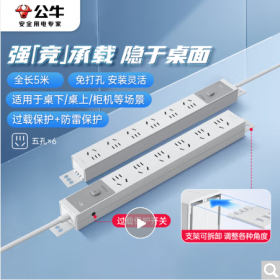 • 公牛/BULL GNE-P106ET 插座 防雷PDU桌面过载超功率保护桌下电竞机柜插座/插线板/插排/排插 6位总控全长5米 防雷防过载