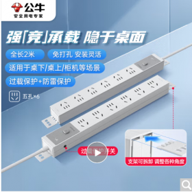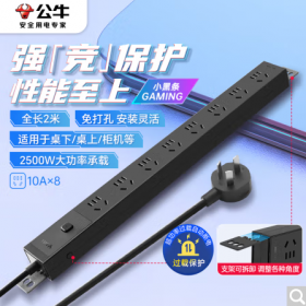 • 公牛/BULL GNE-P108E 插座 PDU桌面过载超功率保护桌下电竞机柜插座/插线板/插排/排插 8位总控开关全长2米 防过载