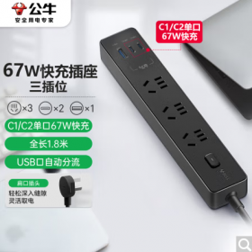 • 公牛/BULL GN-Z1031U67 插座 67W PD苹果快充插座/插线板/插排/接线板 Type-c口+USB口+3插孔 全长1.8米