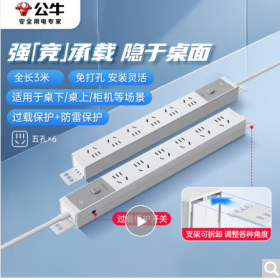• 公牛/BULL GNE-P106ET 插座 防雷PDU桌面过载超功率保护桌下电竞机柜插座/插线板/插排/排插 6位总控全长3米 防雷防过载