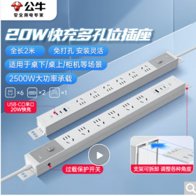 • 公牛/BULL GNE-P106EQ20 插座 20W快充PDU桌面过载超功率保护桌下电竞机柜插座/插线板/插排/排插 6位+USB 全长2米 防过载