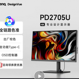 明基/BenQ PD2705U 液晶显示器 PD2705U 27英寸4K HDR Type-C可充电 KVM/PBP/PIP高效分屏 设计修图电脑显示器(OSD小热盘)