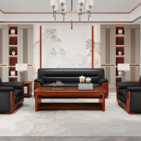 安格佳 KJT916-KRSF13 三人沙发 尺寸 870*930*2150 黑色牛皮/西皮 实木扶手脚 红胡桃色 办公室沙发 接待沙发 沙发 三人位 西皮