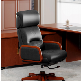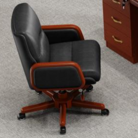 国景 KJS636-KRPY3A 办公椅 办公椅子 尺寸 550*620*850 会议椅 大班椅 学习椅 主管椅 木美直纹黑胡桃 带扶手 牛皮