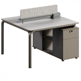 安格佳 KJBT-KBZY14-A 办公桌 尺寸1400W*1200D*750H 职员桌 现代工作桌 2人位组合职员台 工位 屏风位 奶油灰+暖白 (桌屏:千岛鸟)