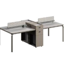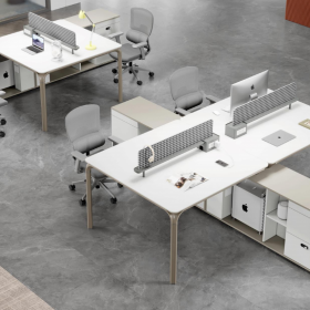安格佳 KJBT-KBZY24-B 办公桌 尺寸 2400W*2800D*750H 职员桌 现代工作桌 4人位组合职员台 工位 屏风位 奶油灰+暖白 (桌屏:千岛鸟)