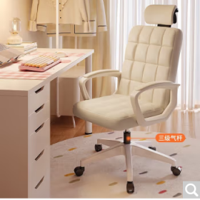 国景 LYPHF16 办公椅 办公椅子 电脑椅办公 办公椅久坐舒适 升降靠背椅子 16格逍遥-米色PU-头枕-三级气杆