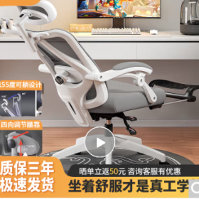 国景 YPHW09 办公椅 办公椅子 人体工学椅子电脑椅家用久坐舒适电竞椅可躺靠背学生学习办公座椅 白灰-搁脚-乳胶坐垫-4级气杆