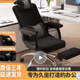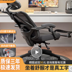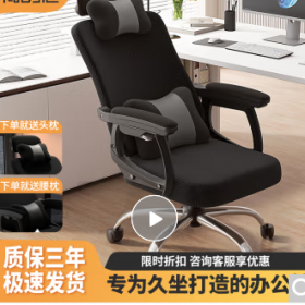 国景 YPHW13 办公椅 办公椅子 电脑椅 电脑椅家用办公椅子 久坐午休可躺电竞椅人体工学舒适老板座椅 黑色网布+脚托(钢制脚)