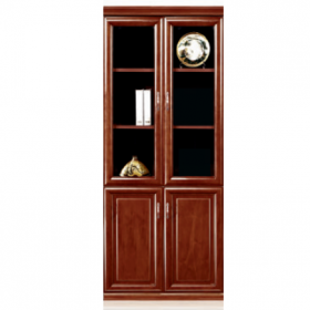 安格佳 CSL-W208 文件柜 900*420*2000 双玻门 木质文件柜 书柜组合 办公室文件柜 背柜 书柜 资料柜 E1级板材-胡桃木