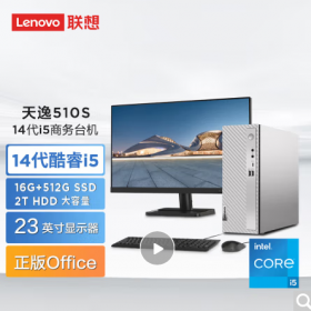 联想/LENOVO 510S 台式计算机 天逸510S商务办公台式机电脑主机(酷睿14代i5-14400 16G 2TB HDD+512G SSD win11)23英寸显示器