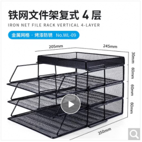 可得优/KW-TRIO WL-06 文件筐 竖式叠加选择层数桌面铁网金属烤漆文件架子多层文件栏文件筐文件框文件盘资料架 3层文件架【含托盘】 金属烤漆