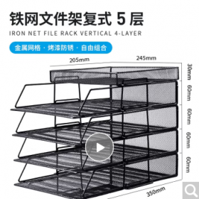 可得优/KW-TRIO WL-06 文件筐 竖式叠加选择层数桌面铁网金属烤漆文件架子多层文件栏文件筐文件框文件盘资料架 5层文件架【含托盘】 金属烤漆