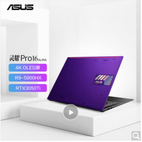 华硕/ASUS Pro16 便携式计算机 灵耀Pro16 AURA版标压锐龙4K OLED高性能轻薄创作笔记本电脑(R9-5900HX 32G 1T RTX3050Ti DCI-P3)紫
