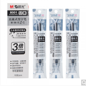 晨光/M&G 8001 书写用笔类用具0.5mm黑色直液式速干中性笔芯 学生考试签字笔替芯 优品系列水笔芯 10支/盒8001.