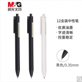晨光/M&G AGP83007S书写用笔类用具黑色中性笔 按动全针管签字笔 本味系列水笔 12支/盒0.35mm.