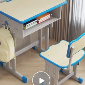 • 凯威k6152 教学、实验用桌 儿童桌椅套装学生课桌椅可升降中小学生课桌椅学校书桌写字桌写字台培训桌辅导班学习桌椅套装家用学习桌加厚 双柱桌+蓝白靠背椅