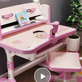 • 凯威KPQ1303-007 教学、实验用桌 儿童学习桌椅套装可升降儿童书桌写字台 小孩桌子写字桌小学生书桌课尊享草莓【台灯+矫姿器】