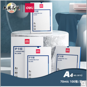 得力/deli 3819 塑封膜 过塑机塑封机膜过塑膜 非真空包装机膜 .优质护卡膜/塑封膜220*305mm A4 100张/包