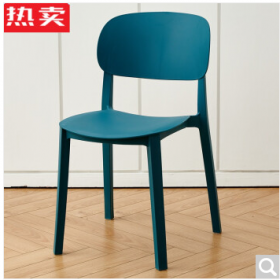 华盛H410 桌前椅 通用椅子家用舒适餐椅塑料靠背椅凳子北欧现代洽谈休闲咖啡厅餐桌椅子 深蓝色-L.G.F加厚款