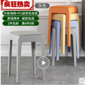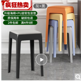 华盛H480 桌前椅 可叠放方凳加厚软坐垫休闲凳轻奢餐凳高板凳简约时尚凳创意北欧方 【灰+黑】升级PU皮+海绵软坐垫-高48CM 承重260斤