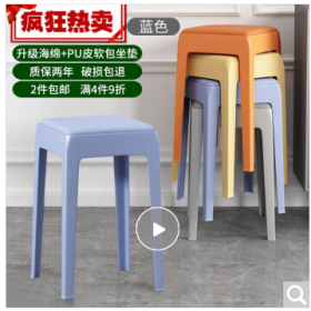 华盛H480 桌前椅 可叠放方凳加厚软坐垫休闲凳轻奢餐凳高板凳简约时尚凳创意北欧方 【蓝色】升级PU皮+海绵软坐垫-高48CM 承重260斤