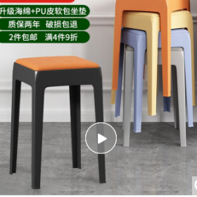 华盛H480 桌前椅 可叠放方凳加厚软坐垫休闲凳轻奢餐凳高板凳简约时尚凳创意北欧方 【橙+黑】升级PU皮+海绵软坐垫-高48CM 承重260斤